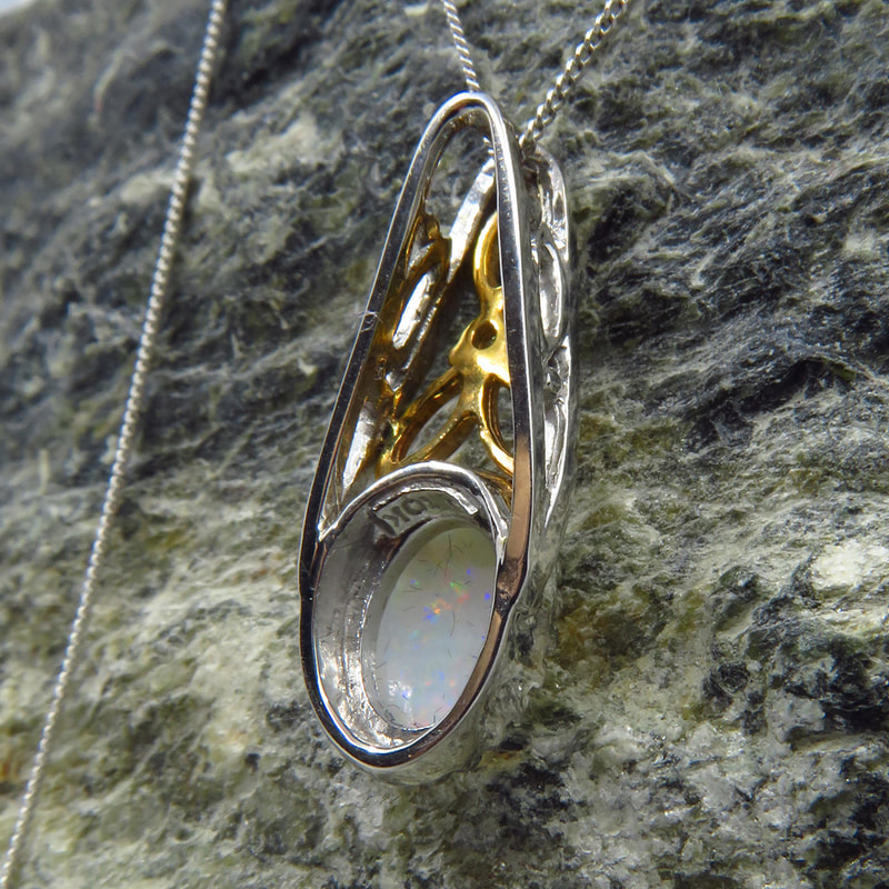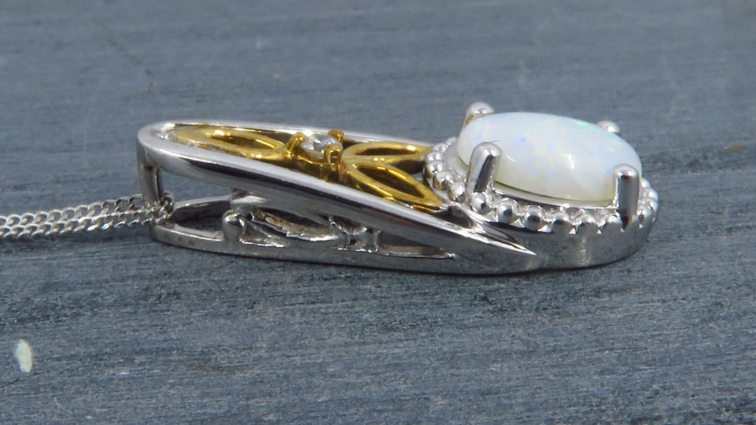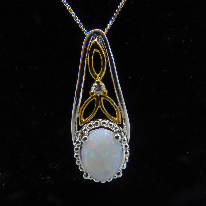 Pendant w/Opal & Diamond in 10K White and Yellow Gold